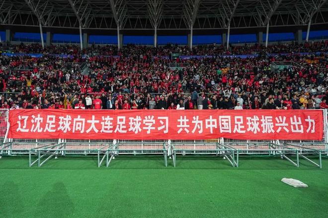 虽然是德比战,但铁人俱乐部尽全力满足大连球迷客场观赛的欲望。铁人球迷在现场打出“欢迎大连”“辽沈足球向大连足球学习,共为中国足球振兴出力”的横幅,彰显省会城市的胸襟。